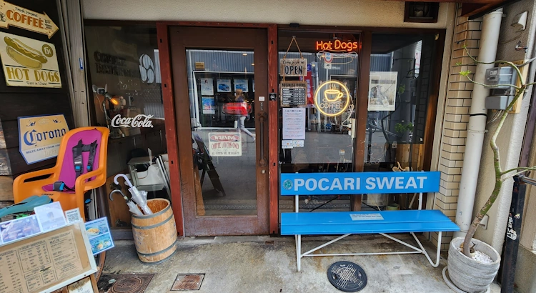 The general organizing principle of the shop seems to be have thrown together whatever the principal of the shop seemed to like at the time. Coffee, of course. But also a collection of anime figures. It seems like it has either been in this location for a long time, or took over an old-style Japanese shop.