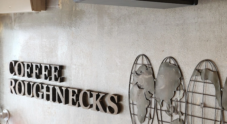 Coffee Roughnecks is a small, quirky, neighborhood spot. As if the big, bright, blue Picari Sweat bench wasn’t enough of an indication, this place can be a little random.